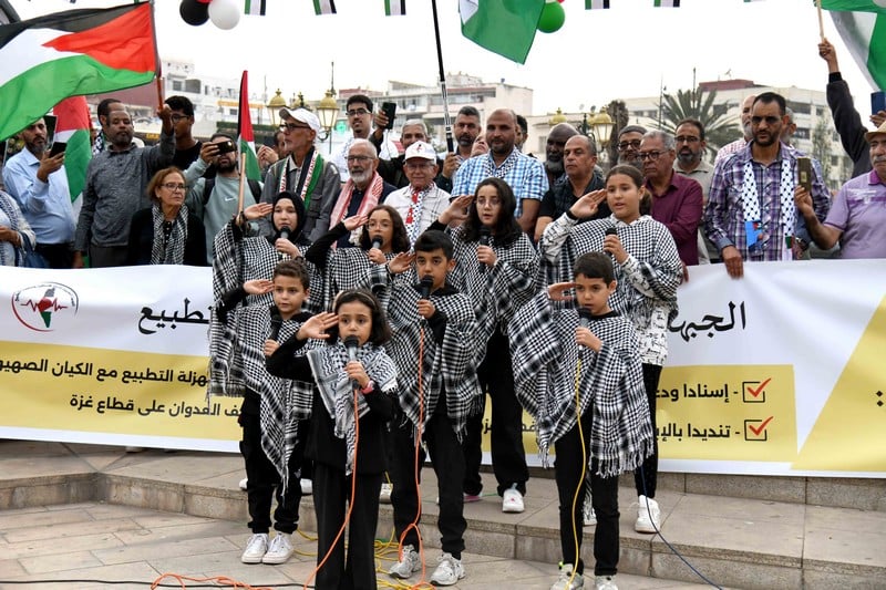 وأضاف عضو السكرتارية الوطنية للجبهة المغربية من أجل فلسطين ومناهضة التطبيع أن هذا المهرجان التضامني يحمل رسائل واضحة، أولاها موجهة إلى الدولة المغربية، قائلا: “ألم يحن الوقت لإيقاف كل أشكال التطبيع؟ ألم يحن الوقت لإغلاق مكتب الاتصال مع الكيان الصهيوني؟ نحن نطالب الدولة بأن تصغي إلى نبض الشارع المغربي وأن تتخذ موقفا واضحا وعاجلا لوقف هذه العلاقات المشينة”.
