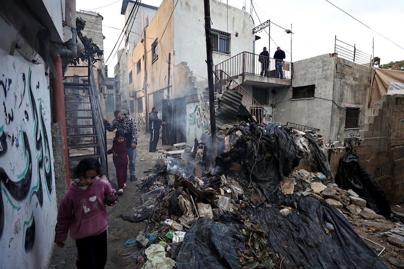 يجلس مدير المدرسة تميم خريس (42 عاما) خارج منزله بجانب أنقاض منزل جيرانه، يحتسي القهوة مع أصدقائه. ويقول لـ”فرانس برس” إن “الإسرائيليين يريدون تدمير الناس وتهجيرهم وكسر شوكتهم. الاحتلال يريد أن يهين الناس حتى لا يفكر أحد بشيء اسمه فلسطين”.