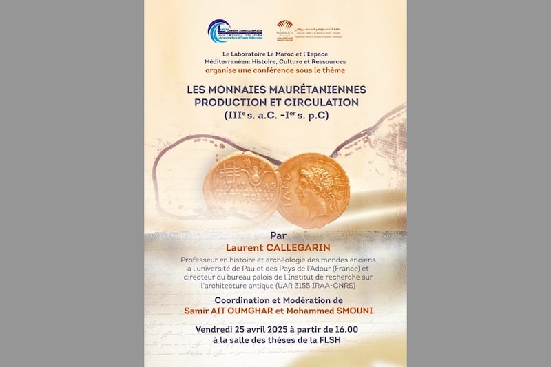 نظم مختبر “المغرب والمجال المتوسطي: التاريخ والثقافة والموارد”، التابع لكلية الآداب والعلوم الإنسانية بمراكش، محاضرة علمية تحت عنوان: “تاريخ العملة في موريطانيا الغربية من خلال موقع ‘ريغا’ بإقليم سيدي سليمان”.