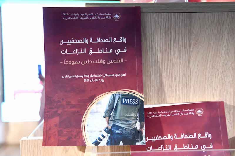 عن منشورات مركز “بيت المقدس للبحوث والدراسات”، أصدرت “وكالة بيت مال القدس الشريف – المملكة المغربية” كتابا عنوانُه “واقع الصحافة والصحافيين في مناطق النزاعات.. القدس وفلسطين نموذجا”، يقدم دراسات أكاديميين وباحثين في جوانب متعددة؛ من بينها “الحماية القانونية المعطلة” للصحافة الفلسطينية في ظل “العدوان الإسرائيلي”، وموقف القانون الدولي الإنساني من الانتهاكات ضد الصحافيين، وأسئلة تغطية المراسل الحربي للنزاعات المسلحة، ودور ومسؤولية وسائل التواصل الاجتماعي في إثراء تغطية الحروب انطلاقا من حالة الحرب على غزة.