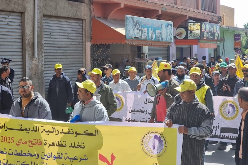 خلّد الاتحاد المحلي للكونفدرالية الديمقراطية للشغل (الكدش) بإقليم الفقيه بن صالح، يوم فاتح ماي 2025، عيد العمال الأممي بمسيرة احتجاجية حاشدة ومهرجان خطابي بساحة لالة أمينة، رفع خلالهما شعارات قوية ضد ما وصفته النقابة بـ”القوانين والمخططات اللاشرعية التي تكرس الفساد وتستهدف الحريات والمكتسبات وتستغل الأزمات”.