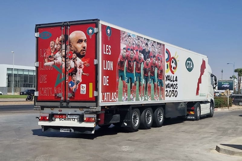 وأضاف: “في السياق نفسه، أي الترويج للمغرب، وعلى إثر شرف تنظيم كأس العالم لسنة 2030، خصصنا 10 شاحنات من أجل الترويج عالميا لهذا التنظيم، تحمل صورا للاعبي المنتخب المغربي وراية المغرب وخريطته بشكل بارز، مع عبارات إشهارية لوجهة المغرب السياحية”.