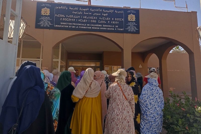 نظمت أمهات تلاميذ وتلميذات ملحقة مدرسة مولاي الزين الواقعة بحي إدرق بمدينة تزنيت، أمس الاثنين، وقفة احتجاجية أمام المديرية الإقليمية للتربية الوطنية بتزنيت، احتجاجا على ما أسمينه بـ”الاكتظاظ الذي تعرفه محلقة إدرق وتأثيره السلبي على التحصيل الدراسي لفلذات أكبادهن”.