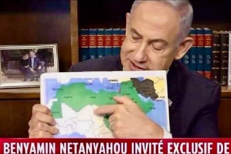 وتطرق نتنياهو خلال المقابلة التي نقلتها قناة “LCI“ وقناة “TF1” إلى التصعيد في الأراضي الفلسطينية، كما قام بإشهار خريطة للشرق الأوسط وشمال إفريقيا يظهر فيها المغرب بدون صحرائه.