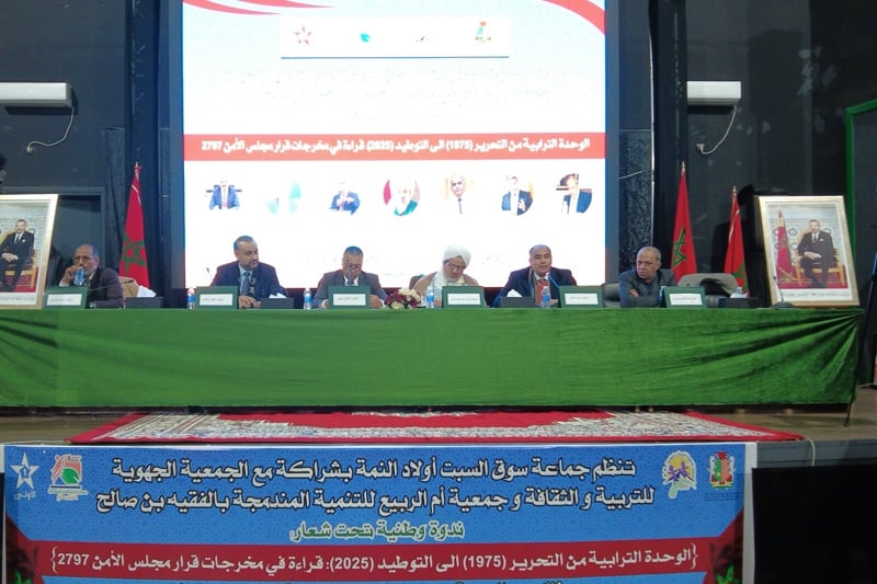 جاء ذلك خلال ندوة وطنية احتضنتها مدينة سوق السبت أولاد النمة، خصصت لتحليل سياقات القرار الأممي 2797 واستعراض دلالاته الدبلوماسية والاستراتيجية، بمشاركة نخبة من الأساتذة الجامعيين والخبراء في القانون والعلاقات الدولية. وقد افتتحت الجمعية الجهوية للتربية والثقافة أشغال الندوة بكلمة شددت على أهمية النقاش الأكاديمي حول المستجدات الوطنية المرتبطة بالوحدة الترابية.