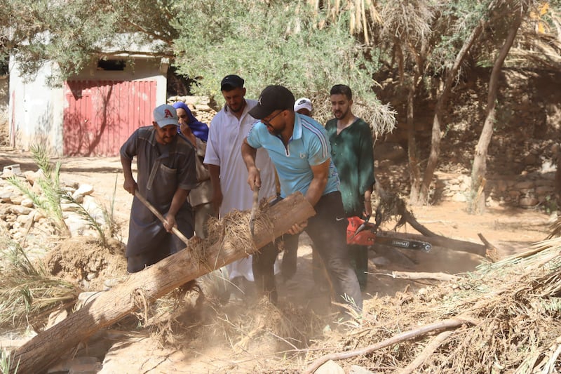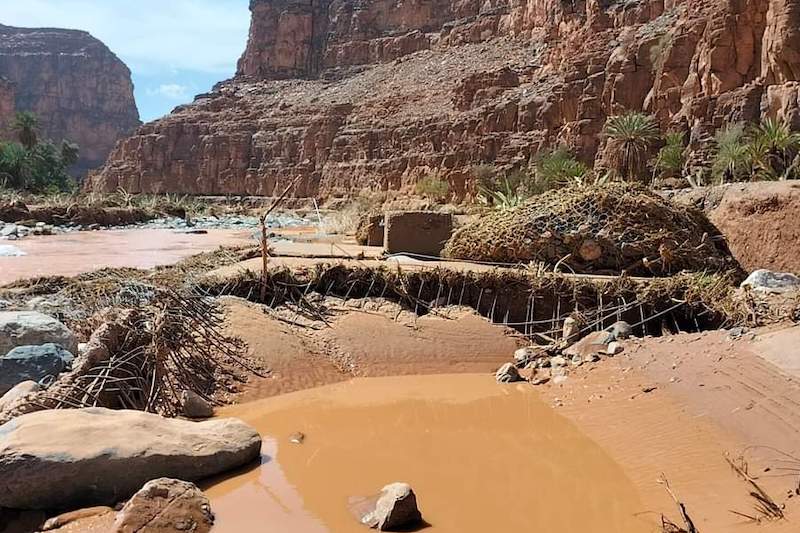 وتابع المتحدث ذاته: “ليلة الفيضان انقطعت الواحة بشكل كامل عن العالم الخارجي، لكن ولله الحمد لم تسجل أي خسائر في الأرواح، في حين انهار منزلان وجرفت السيول مئات أشجار النخيل والخروب واللوز والزيتون، ومساحات شاسعة من الأراضي الفلاحية التي تستغلها الساكنة للزراعات المعيشية”.