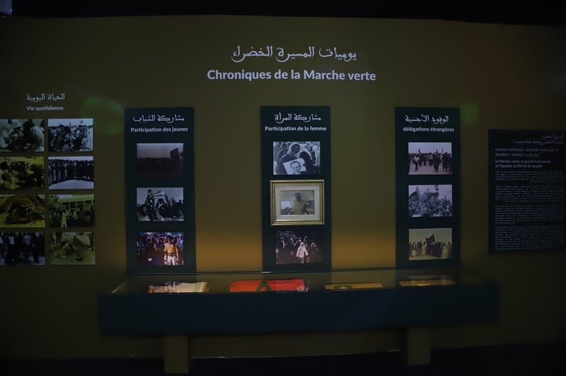 وأضافت المؤرخة أن معرض “من المسيرة الخضراء إلى مسيرات النماء” يبين في فضائه الأول المرتكزات التي ارتكز عليها الملك الحسن الثاني للمطالبة بالصحراء المغربية، ومنها “المرتكزات التاريخية التي تبينها وثائق نعرضها لممارسة السيادة المغربية في الأقاليم الصحراوية، من خلال ظهائر تعيينات القضاة والعمال والباشاوات وفض النزاعات بين القبائل، ومن خلال نصوص البيعات لأن البيعة أس من أهم أسس نظام الحكم في المغرب”.