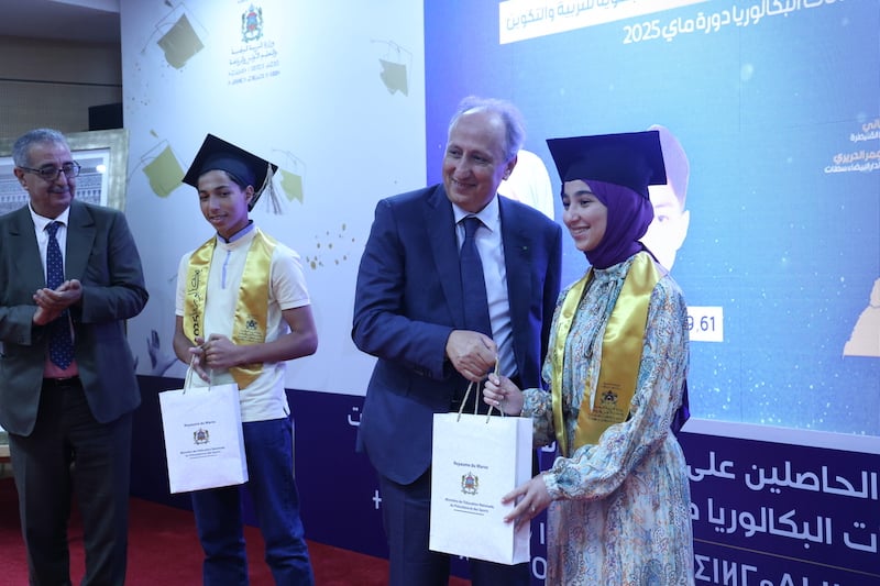 في أجواء احتفالية مفعمة بالفخر والاعتزاز نظمت وزارة التربية الوطنية والتعليم الأولي والرياضة، اليوم الجمعة، حفلاً تكريمياً على شرف التلميذات والتلاميذ الحاصلين على أعلى المعدلات الوطنية في امتحانات الباكالوريا برسم الموسم الدراسي 2024-2025، وذلك بحضور مسؤولين تربويين وأسر المحتفى بهم.