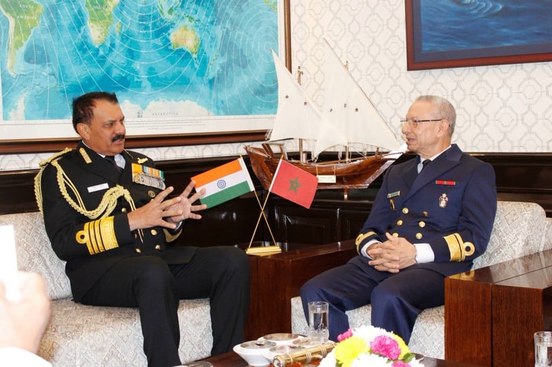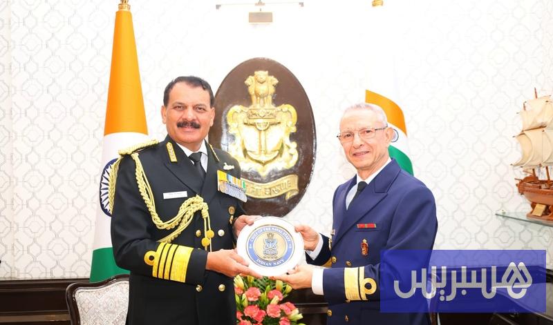 استقبل دينيش ك. تريباثي، قائد القوات البحرية الهندية، اليوم الثلاثاء، محمد طحين، مفتش البحرية الملكية المغربية، في إطار زيارة رسمية لوفد بحري مغربي إلى الهند.