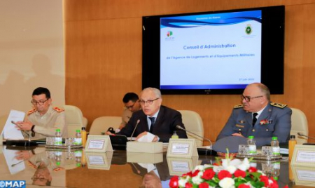 وأبرز الوزير، خلال هذا الاجتماع، الجهود التي تبذلها الوكالة من أجل تطوير وتيسير الولوج إلى السكن لفائدة أفراد القوات المسلحة الملكية والموظفين المدنيين بإدارة الدفاع الوطني، وذلك تماشيا مع العناية السامية التي يحيط بها جلالة الملك هذه الفئة من السكان، مذكرا بضرورة مواصلة جهود دعم مختلف القطاعات الوزارية والمؤسسات العمومية الأعضاء في مجلس الإدارة لمواكبة برامج وكالة المساكن والتجهيزات العسكرية.