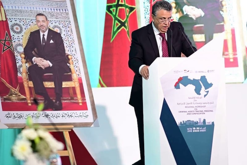 جاء ذلك خلال مشاركة الوزير في ورشة العمل الإقليمية التي تحتضنها الرباط ما بين 16 و18 يونيو 2025، تحت عنوان: “تتبع وتجميد وحجز ومصادرة الأصول الإجرامية”، وحضرها خبراء وممثلو مؤسسات قضائية وتنفيذية من بلدان عدة، في إطار تعزيز الجهود الدولية لمواجهة تدفقات الأموال غير المشروعة.