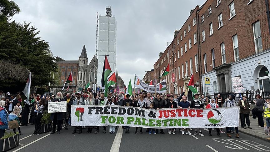 وذكر مراسل الأناضول، أن المتظاهرين ساروا من الحديقة إلى شارع كيلدار، حاملين العلمين الفلسطيني والأيرلندي.