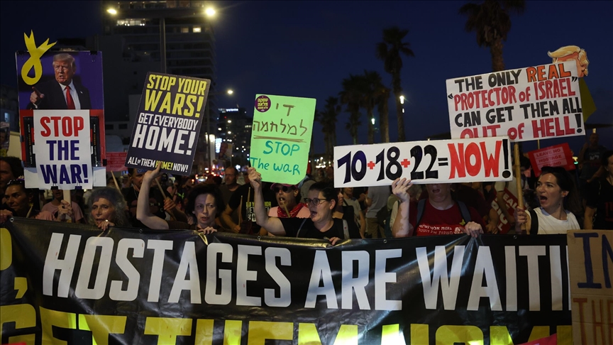 فيما أكدت القناة 12 العبرية، أن آلاف الإسرائيليين يحتشدون في هذه الأثناء، وسط تل أبيب للمطالبة بوقف الحرب على قطاع غزة وإنجاز صفقة تبادل أسرى مع حركة حماس.