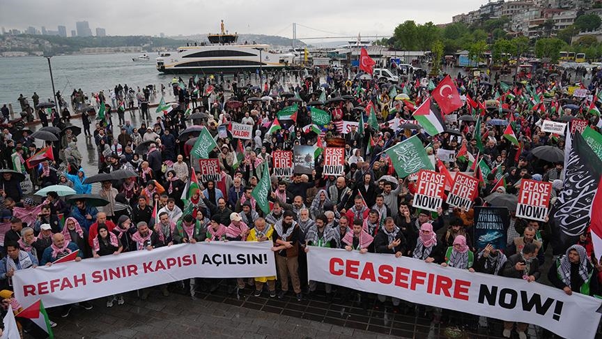 وأشار أيدن إلى أن القضية الفلسطينية هي “قضية عالمية”، وبين أن “المظاهرات ليست في ميدان أسكودار فحسب بل في العديد من الميادين من المكسيك إلى البقان وإلى الشرق الأوسط والعديد من مناطق العالم”.