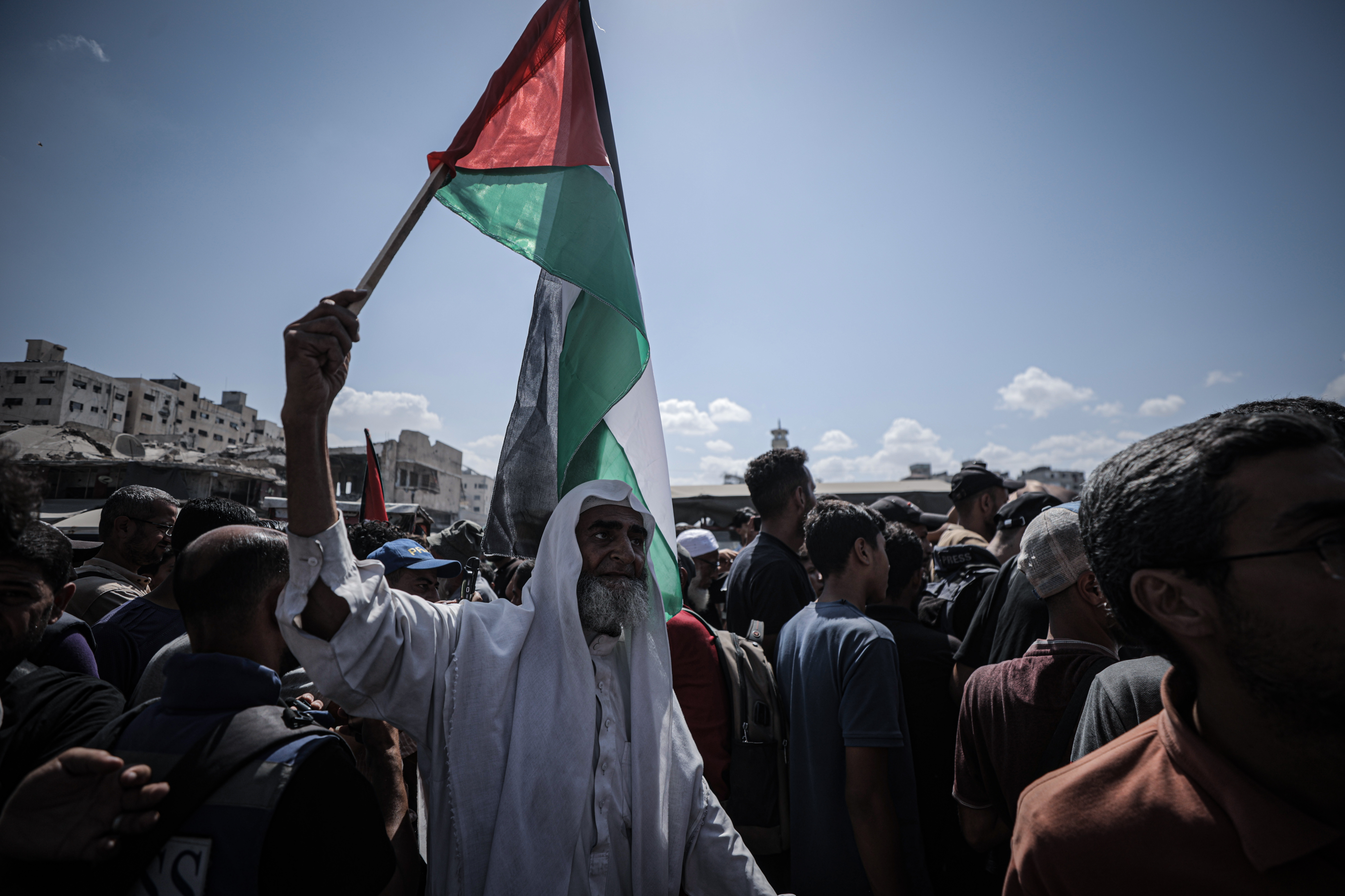 وأطلق المتظاهرون على الفعالية اسم “مسيرة الأكفان” تأكيدا على التشبث بأرضهم في ظل تصاعد الإنذارات الإسرائيلية لسكان مدينة غزة بإخلاء المدينة نحو مناطق المواصي جنوب القطاع.