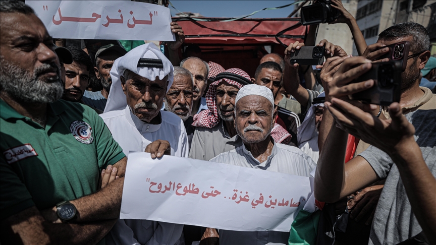 وأكد المشاركون في المسيرة، رفضهم مغادرة المدينة، وإصرارهم على البقاء فيها، ورفض كل مخططات التهجير القسري التي تحاول إسرائيل فرضها تحت وطأة القصف والحصار، حسب مراسل الأناضول.