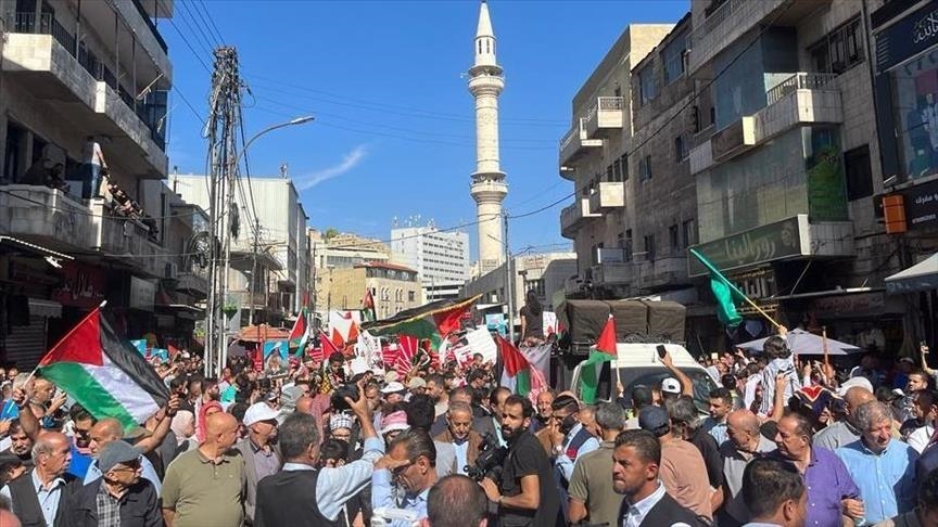 شاركها فيسبوك تويتر لينكدإن بينتيريست تيلقرام البريد الإلكتروني في منطقة وسط البلد بالعاصمة عمان بدعوة من الملتقى الوطني لدعم المقاومة، وفق مراسل الأناضول المصدر: وكالات