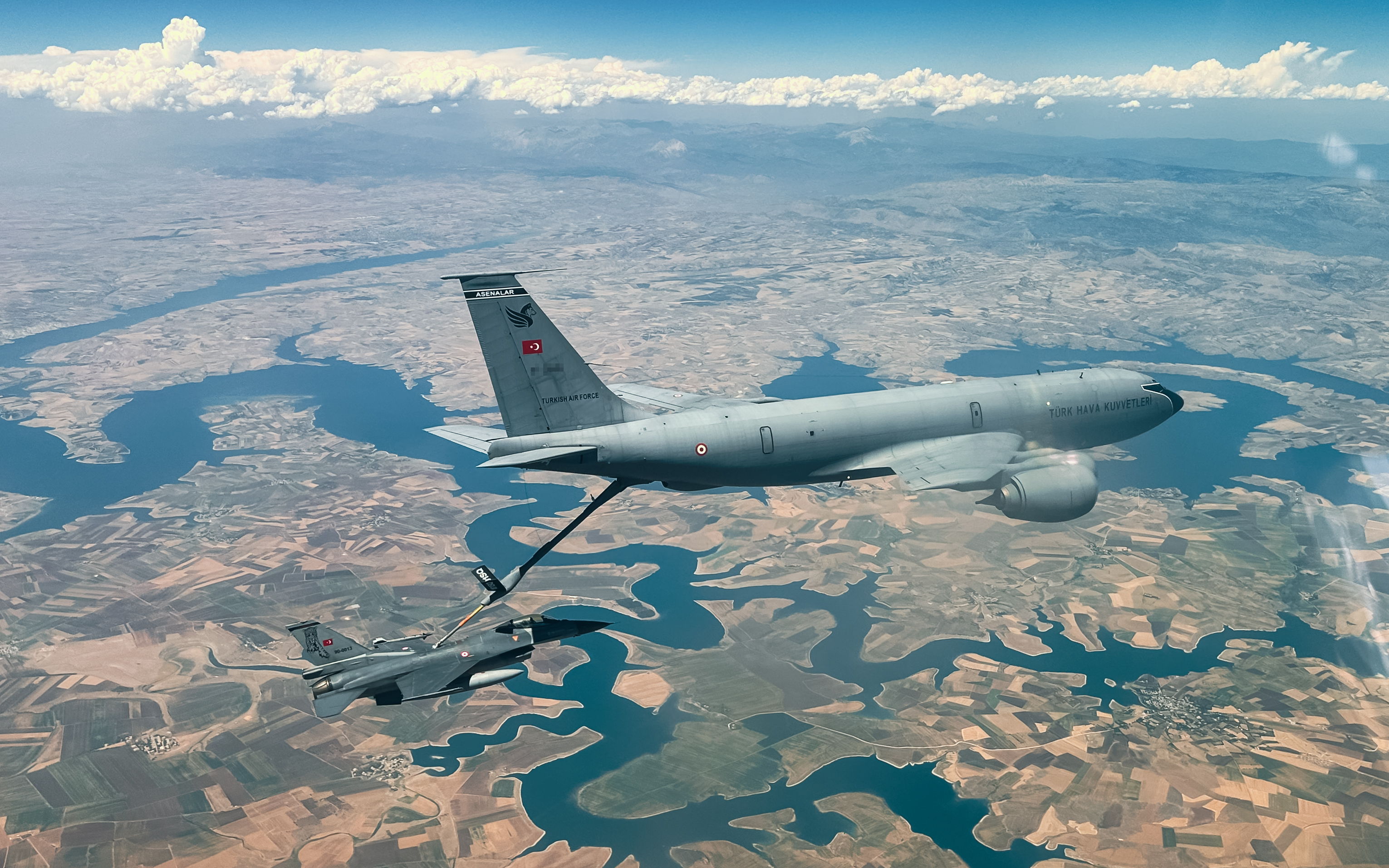 حلّقت طائرة التزويد بالوقود فوق أجواء ديار بكر، حيث التقت أولًا مع المقاتلة فانتوم طراز F-4E/2020، ثم بمقاتلتين من طراز F16.