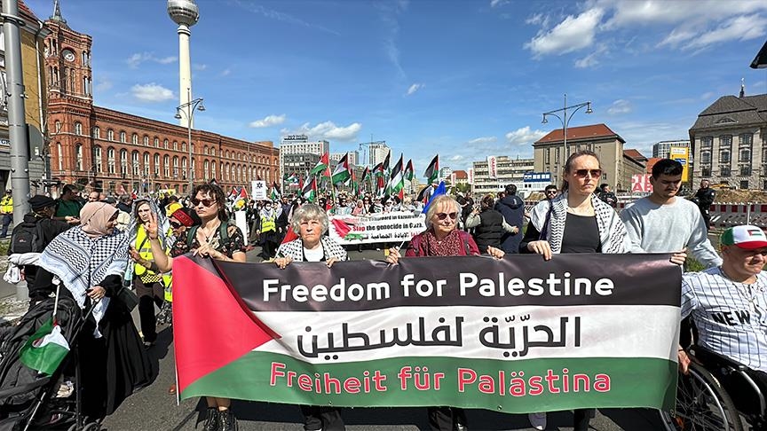 شاركها فيسبوك تويتر لينكدإن بينتيريست تيلقرام البريد الإلكتروني المتظاهرون رفعوا في مسيرة ببرلين لافتات وأعلام فلسطين ونددوا بالانتهاكات الإسرائيلية المصدر: وكالات