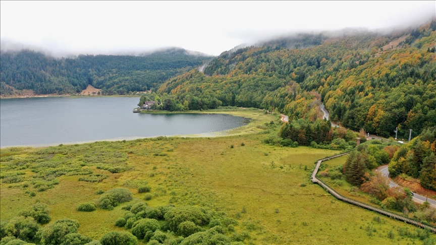 ألوان الأصفر والأحمر بدت واضحة على أوراق الأشجار في غابات متنزه بحيرة أبانت بولاية بولو، ما أعطى الغابات جمالا أخاذا..