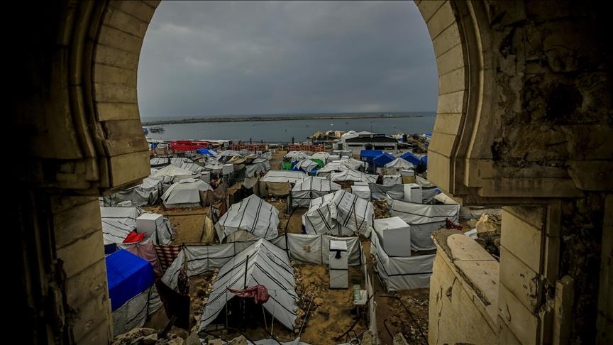 وحاول مئات الفلسطينيين الاحتماء من مياه الأمطار تحت أجزاء من مبان دمرها الجيش الإسرائيلي في مدينة غزة، حسب الشهود.