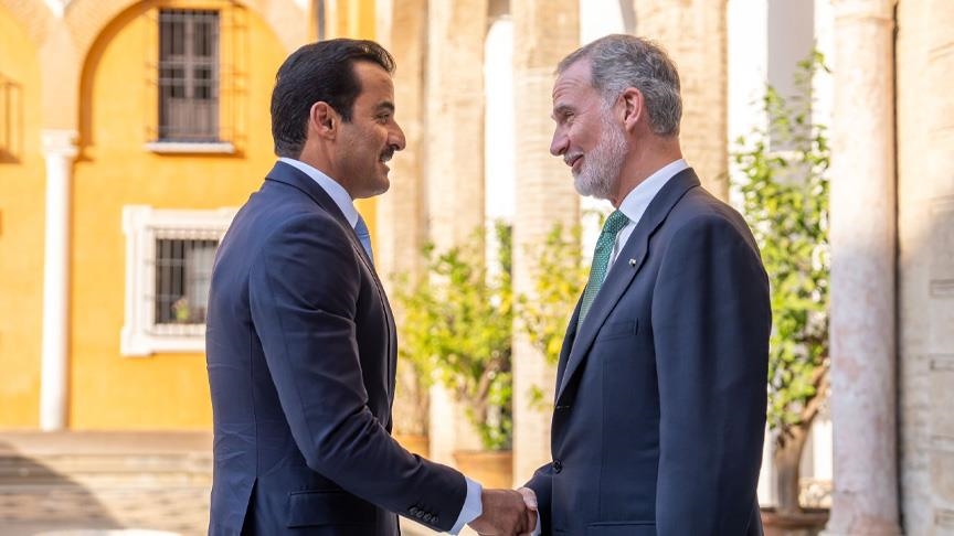 جاء ذلك خلال لقاء في القصر الملكي بمدينة إشبيلية جنوب البلد الأوروبي مساء الأحد، وفق بيان للديوان الأميري القطري.