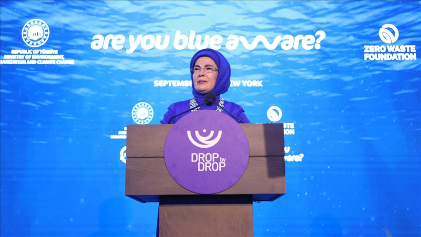 وفي حدثيها عن نفايات البحر، لفتت أردوغان إلى إنتاج 57 مليون طن من النفايات البلاستيكية عالميا سنويا.