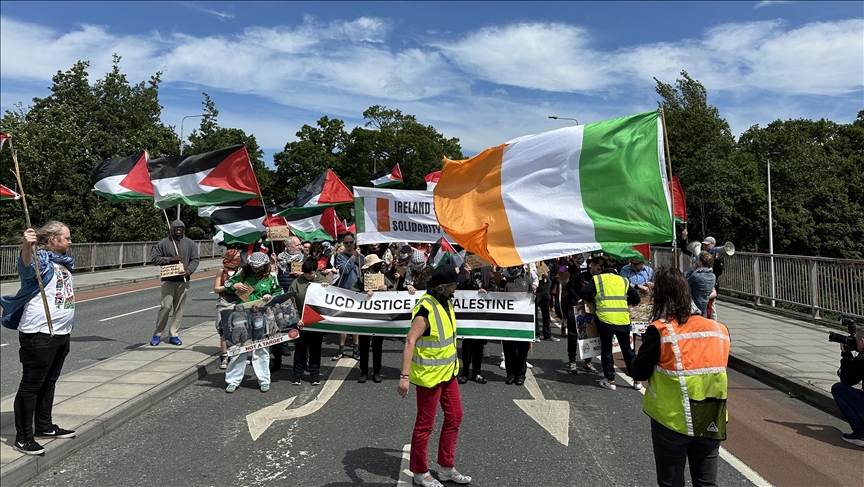 شاركها فيسبوك تويتر لينكدإن بينتيريست تيلقرام البريد الإلكتروني دعا للمظاهرة الجمعية الأيرلندية للتضامن مع فلسطين واتحاد طلاب جامعة كلية دبلن وأكاديميون فلسطينيون المصدر: وكالات
