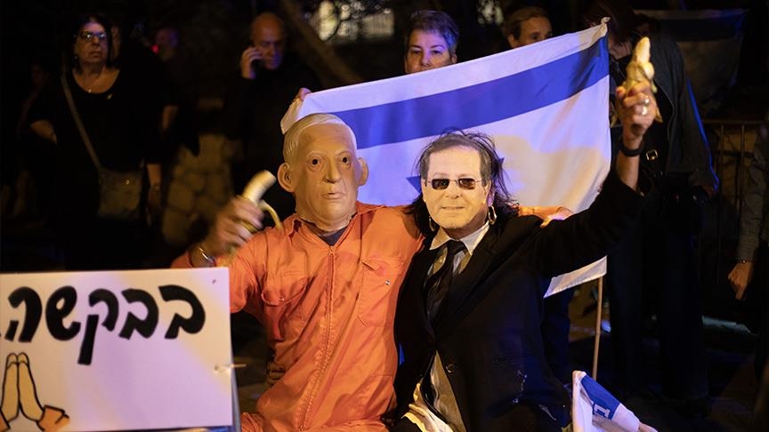 وذكر الموقع أن متظاهرًا ارتدى قناعًا لنتنياهو وبدلة تشبه زي السجون البرتقالية، في إشارة إلى محاكمته الجارية بتهم فساد.
