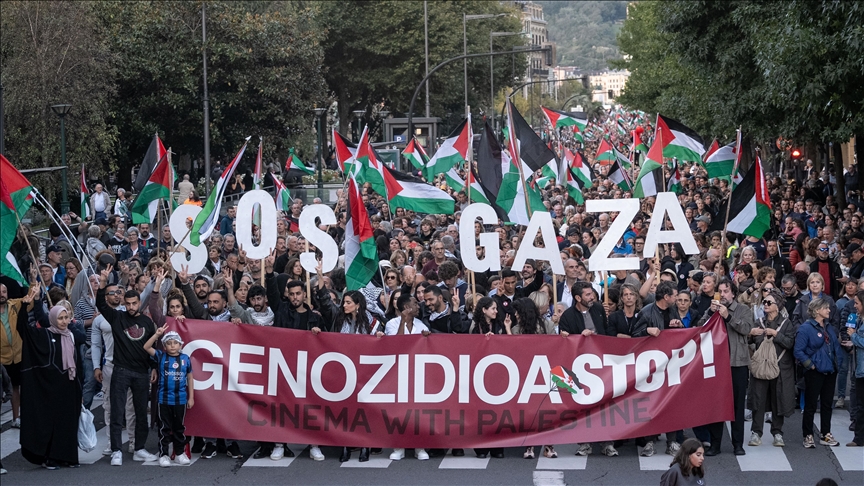 احتجاج واسع بمهرجان سان سباستيان السينمائي في إسبانيا ضد الإبادة بغزة