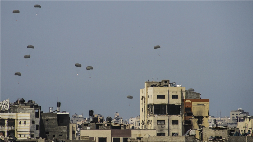 وجرت عمليات الإنزال الجوي المشترك “فوق المناطق المعزولة التي يتعذر الوصول إليها في شمال قطاع غزة (لم تحددها) عبر 4 طائرات”.