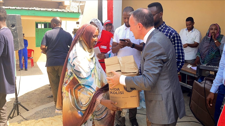 والخميس، تم وضع برنامج لتوزيع المساعدات التي وصلت إلى السودان بتنسيق من إدارة الكوارث والطوارئ التركية (آفاد)، في مركز إيواء النازحين بمدينة بورتسودان (شرق).
