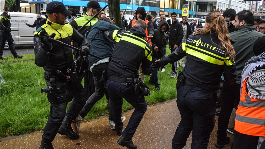 الشرطة الهولندية تحاصر مظاهرة مؤيدة لفلسطين أمام البرلمان في لاهاي