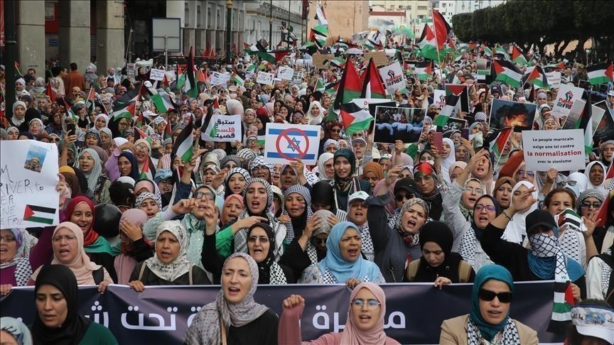 وبوتيرة شبه يومية منذ اندلاع العدوان على غزة، تشهد مدن مغربية احتجاجات شعبية حاشدة للتضامن مع الشعب الفلسطيني وحقوقه، ولاسيما إنهاء الاحتلال الإسرائيلي وقيام الدولة الفلسطينية، وعاصمتها القدس الشرقية المحتلة.