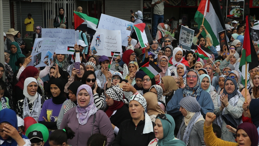 وكما ردد المحتجون هتافات تدين تصريحات الرئيس الفرنسي وتتضامن مع غزة، من بينها “السنوار خلى (ترك) وصية، لا تنازل على القضية”، و”فلسطين أمانة والتطبيع خيانة”، و”ماكرون … فلسطين في العيون”.