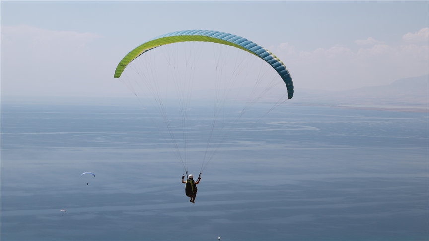 بحيرة “وان” التركية.. مقصد فريد لعاشقات التحليق المظلي