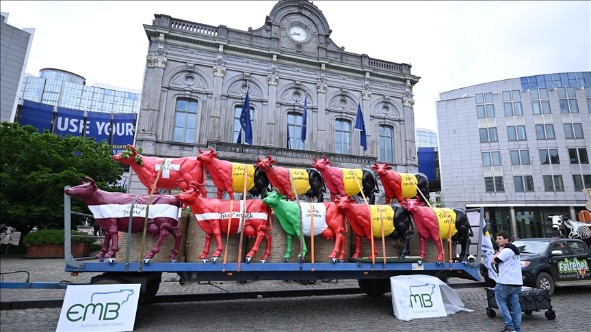 شاركها فيسبوك تويتر لينكدإن بينتيريست تيلقرام البريد الإلكتروني تظاهروا أمام مؤسسات الاتحاد الأوروبي مطالبين برفع ثمن منتجاتهم حيث جلبوا مجسمات أبقار ووضعوا حزما كبيرة من القش.. المصدر: وكالات