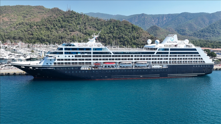 شاركها فيسبوك تويتر لينكدإن بينتيريست تيلقرام البريد الإلكتروني السفينة السياحية قادمة من جزيرة كريت اليونانية ويبلغ طولها 265 مترا.. المصدر: وكالات