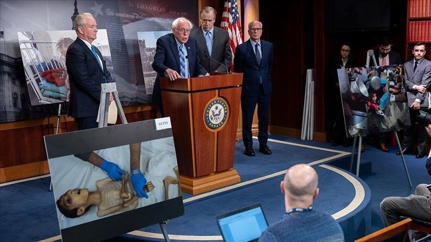 السيناتور الأمريكي المستقل بيرني ساندرز عرض صورة التقطها مصور الأناضول أشرف أبو عمرة للطفل الفلسطيني عبد الكريم الذي فقد حياته نتيجة الجوع..