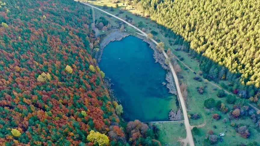 ألوان الخريف زينت أشجار البلوط والصنوبر والزان في منطقة البحيرة الواقعة بولاية بولو شمال غربي البلاد..