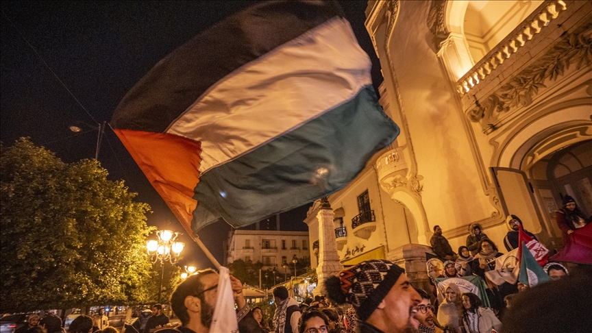 الوقفة، نظمتها جمعية “أنصار فلسطين” و”التحالف التونسي لدعم الحق الفلسطيني” (غير حكوميتين)، وفق ما أفاد مراسل الأناضول.