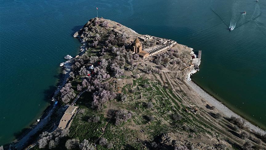 جزيرة أكدامار التركية تتزين بأزهار أشجار اللوز