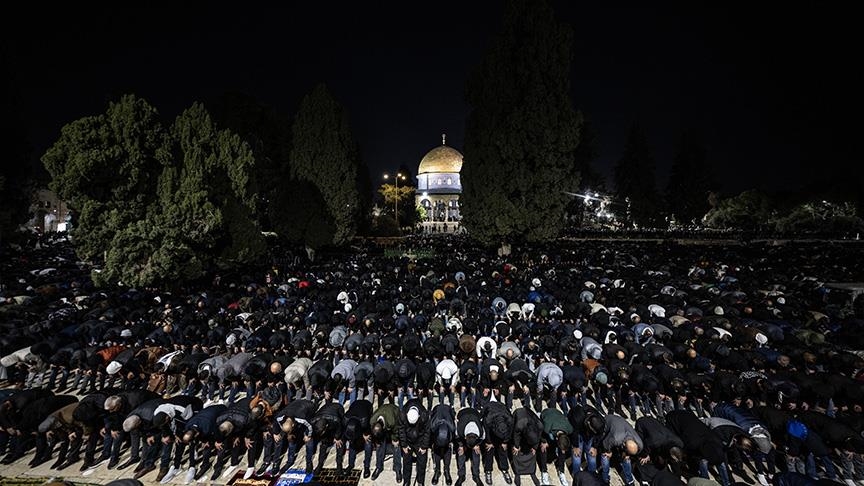 وقالت دائرة الأوقاف الإسلامية في القدس (تابعة للحكومة الأردنية)، في بيان مقتضب، إنّ أكثر من 100 ألف مصل أدوا صلاتي العشاء والتراويح في رحاب المسجد الأقصى المبارك.