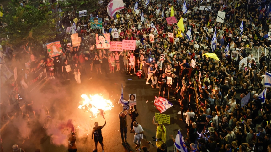 وأوضحت أنه كجزء من الاحتجاج في تل أبيب، أضيئت مشاعل ورسم “رمز المختطف” على بعض الشوارع.