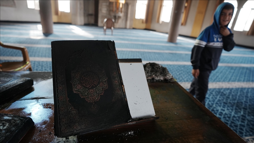 وفجر الخميس، أحرق مستوطنون إسرائيليون متطرفون أجزاء من مسجد في بلدة دير استيا وخطوا شعارات عنصرية باللغة العبرية على جدرانه.