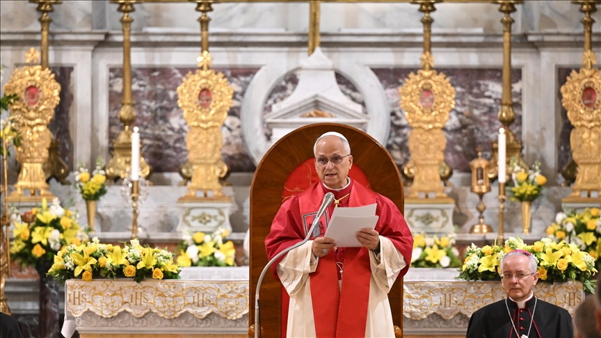 رئيس دولة الفاتيكان يلقي كلمة بكنيسة في إسطنبول