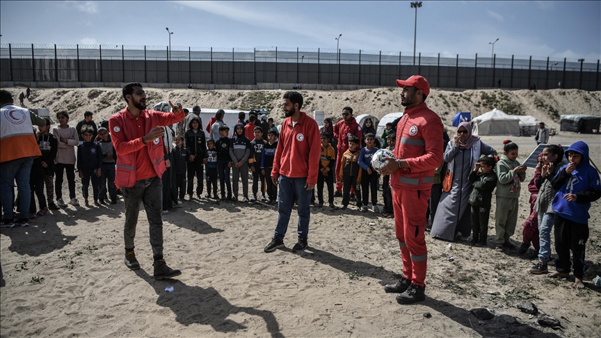 عدسة الأناضول، رصدت قيام طواقم الهلال الأحمر المصري باللعب مع الأطفال وعائلاتهم الذين فرّوا من الحرب الإسرائيلية في شمال قطاع غزة إلى مدينة رفح أقصى جنوب القطاع.