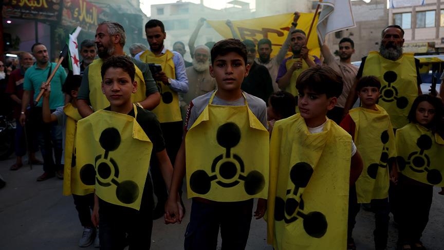 وأفاد مراسل الأناضول، بأن العشرات خرجوا في مسيرة سارت من منطقة القابون إلى زملكا، مرتدين قمصانا صفراء تشير إلى الهجوم الكيميائي.