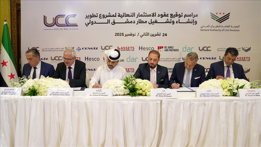 وأفاد مراسل الأناضول في حينه، بأن ائتلاف تجاري تركي قطري أمريكي، وقع مع الهيئة العامة للطيران المدني السورية، اتفاقية استثمارية بقيمة 4 مليارات دولار، تهدف إلى رفع الطاقة الاستيعابية لمطار دمشق الدولي إلى 31 مليون مسافر سنويا، خلال 8 سنوات.