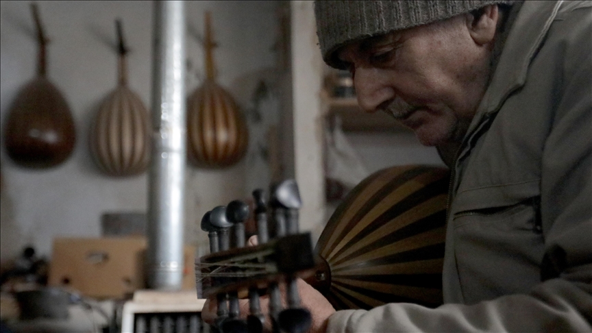يتمسك السوري حسان حمزة البالغ من العمر 68 عاما بمهنة صناعة آلات العود في مدينة الباب بريف محافظة حلب.